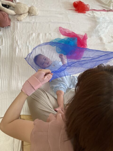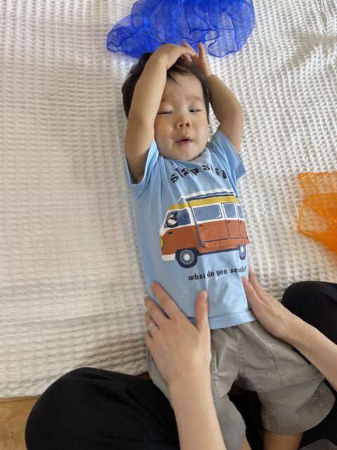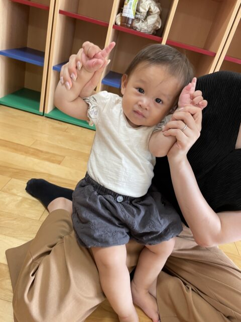 歌に合わせてママにタッチをしてもらっていると