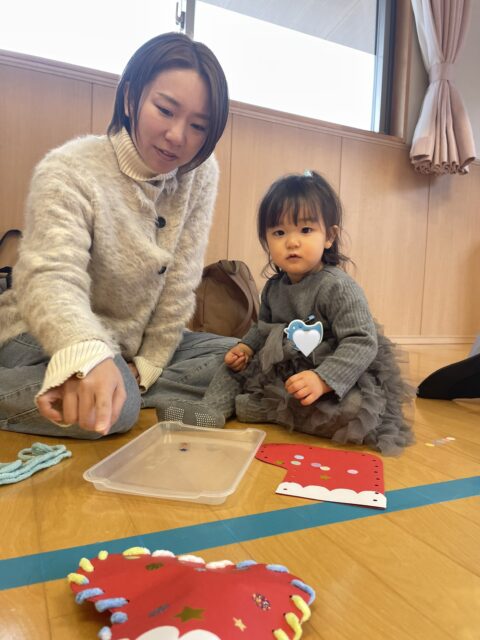 親子クリスマス製作、