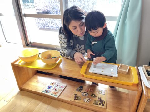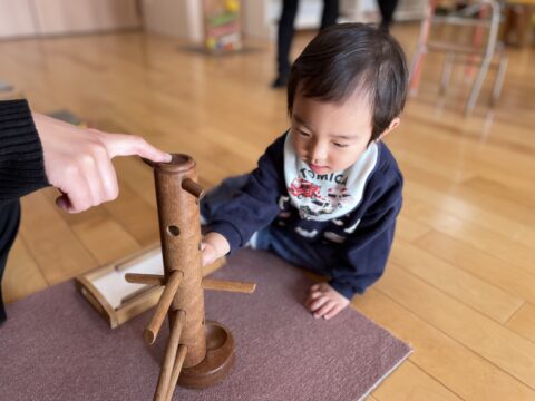 一緒に行い、でも手元をじっくり見る様子が見られ、